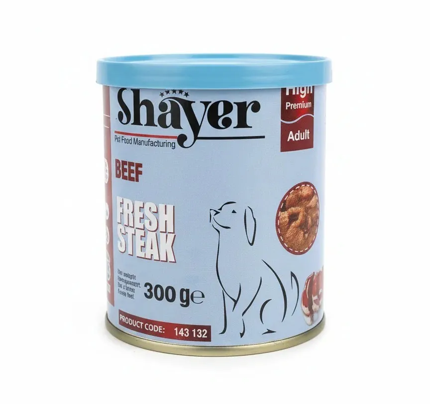 کنسرو سگ شایر با طعم استیک تازه گوشت گاو وزن ۳۰۰ گرم